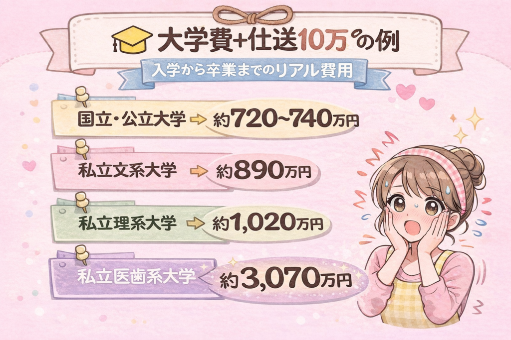 | 私立文系大学(4年) | 22.4 | 330.9 | 57.5 | 410.8 |